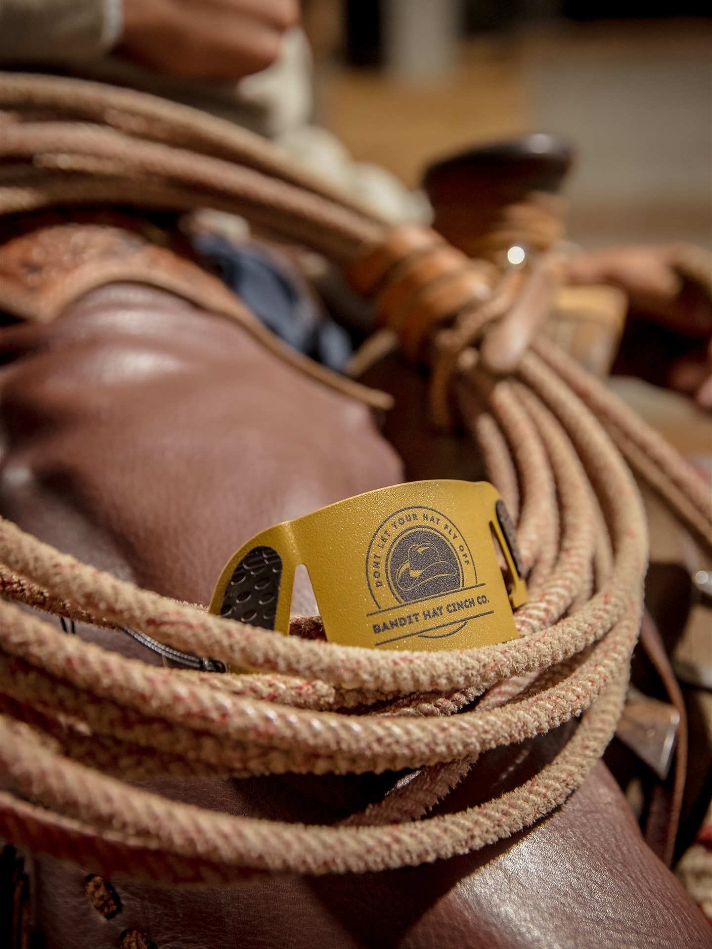 Bandit Hat Cinch was created for the cowgirls (and cowboys) who work, ride, and live in their hats. Their innovative cinch attaches discreetly inside your hat band to keep it secure. Whether you’re competing, training, doctoring cattle, or simply battling a windy day. No more worrying about your hat flying off in the middle of a run or while you’re getting the job done.