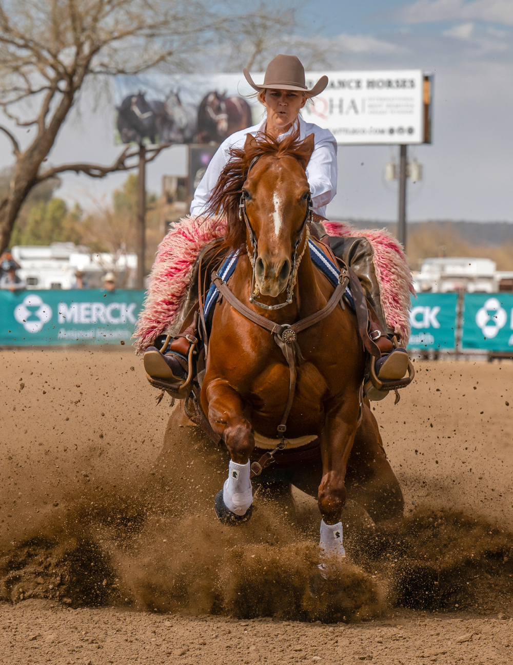 A three-time competitor at Art of the Cowgirl, Jenna is looking forward to stepping back into the arena at Rancho Rio in February. When asked why she returns to the event each year, Jenna says that it has everything to do with the atmosphere. One has the unique opportunity to meet and compete against some of the best women and horses in the industry, from all over the country. Though you might expect an air of rivalry amongst a small group of women competing for the same objective, the community is nothing but supportive of one another.