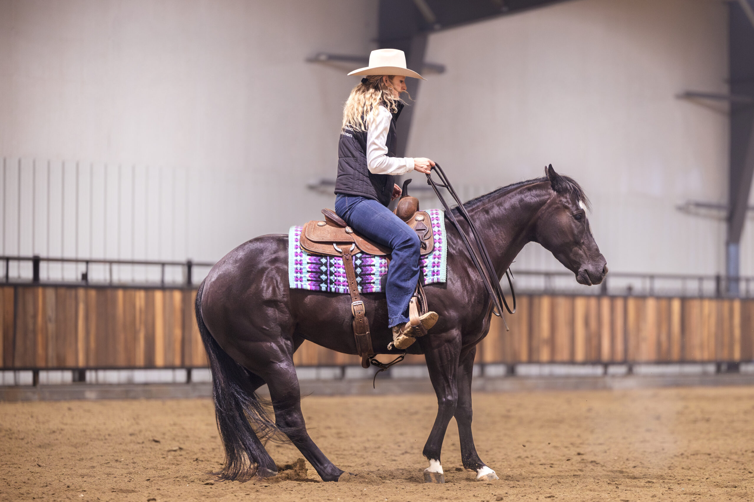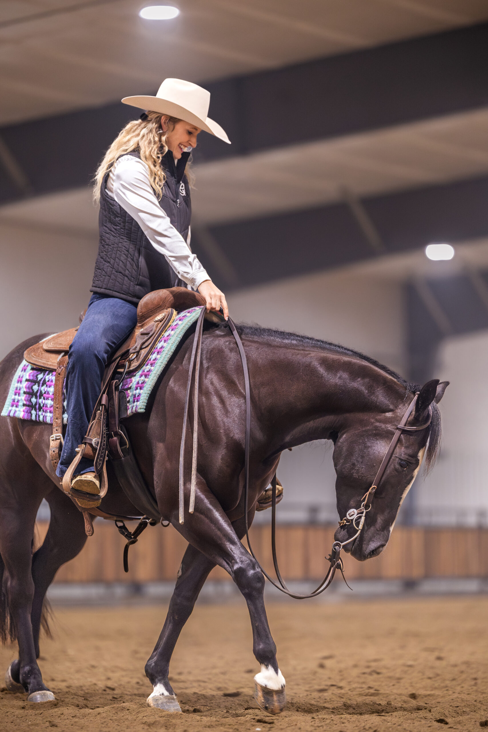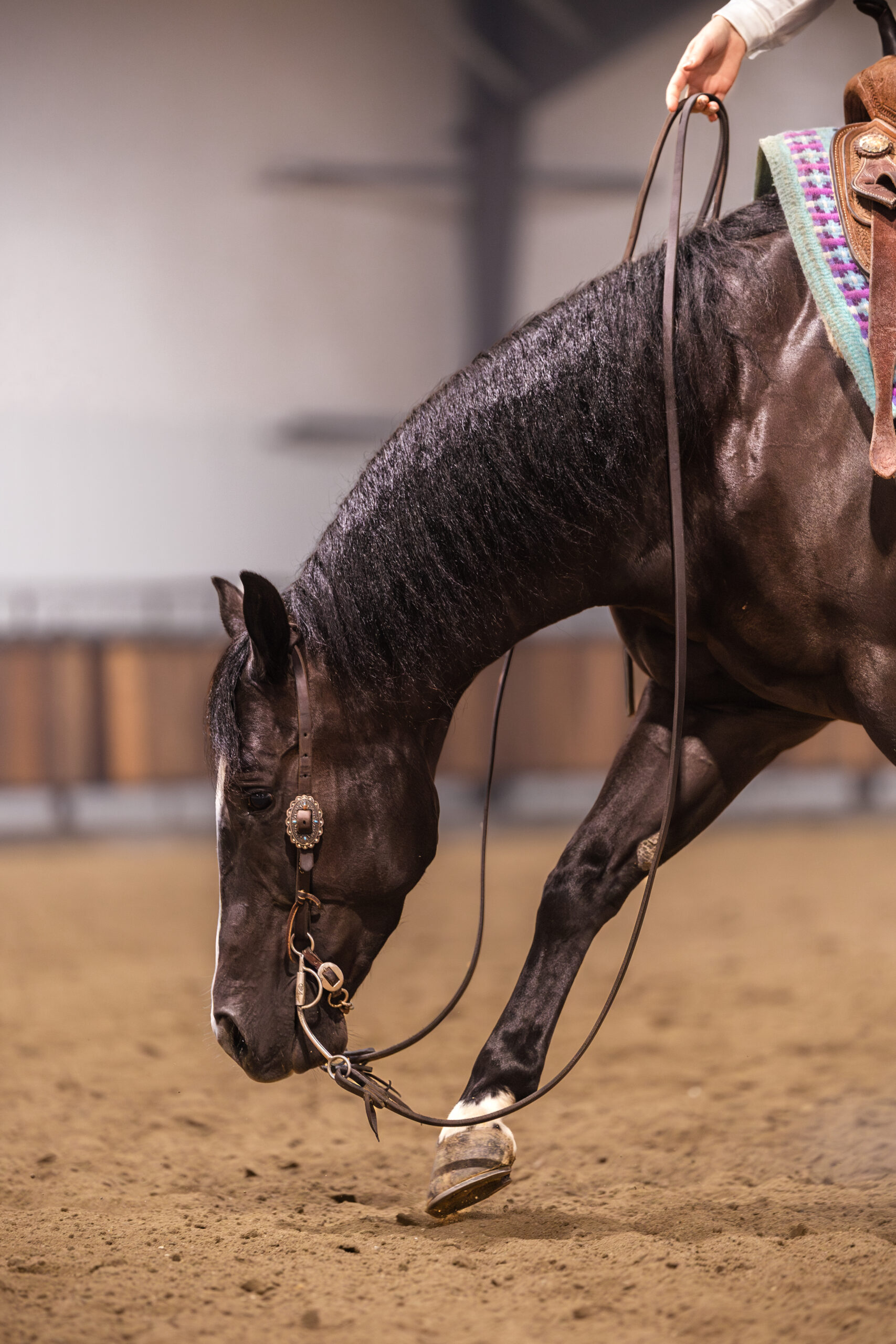 Shivers’ pedigree shines through in her incredible mind and talent. This girl is always so willing to perform any task. Shivers stays broke no matter the event or atmosphere. She shows her diversity with her experience in reining, cowhorse, and ranch classes. Shivers can really get around in her spins and hits the ground hard in her stops. She has a gorgeous extended trot that comes naturally, and boy, is she smooth! Whether you are riding two-handed or one-handed, she will be broke. If you are looking for your next rope horse, she’s gritty, cowy, and loves to put her hind end in the ground!
