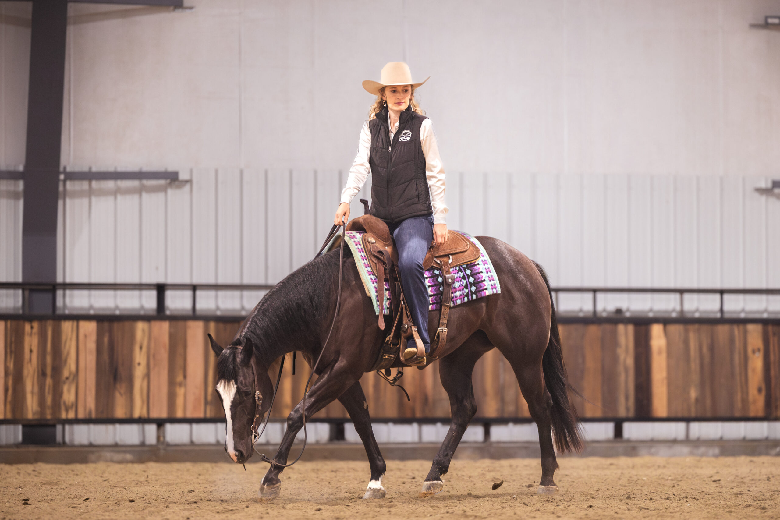 “Shivers” is a highly attractive black mare that stands 14.3 hh with impeccable conformation. There is no surprise that she looks and rides the way she does, being a daughter of the great, A Vintage Smoke-earner of $600,000 with progeny earnings over $500k. Shivers is out of a money-earning mare who is by Matt Dillon Dun It, an earner of $168,000. This gal was born to perform!