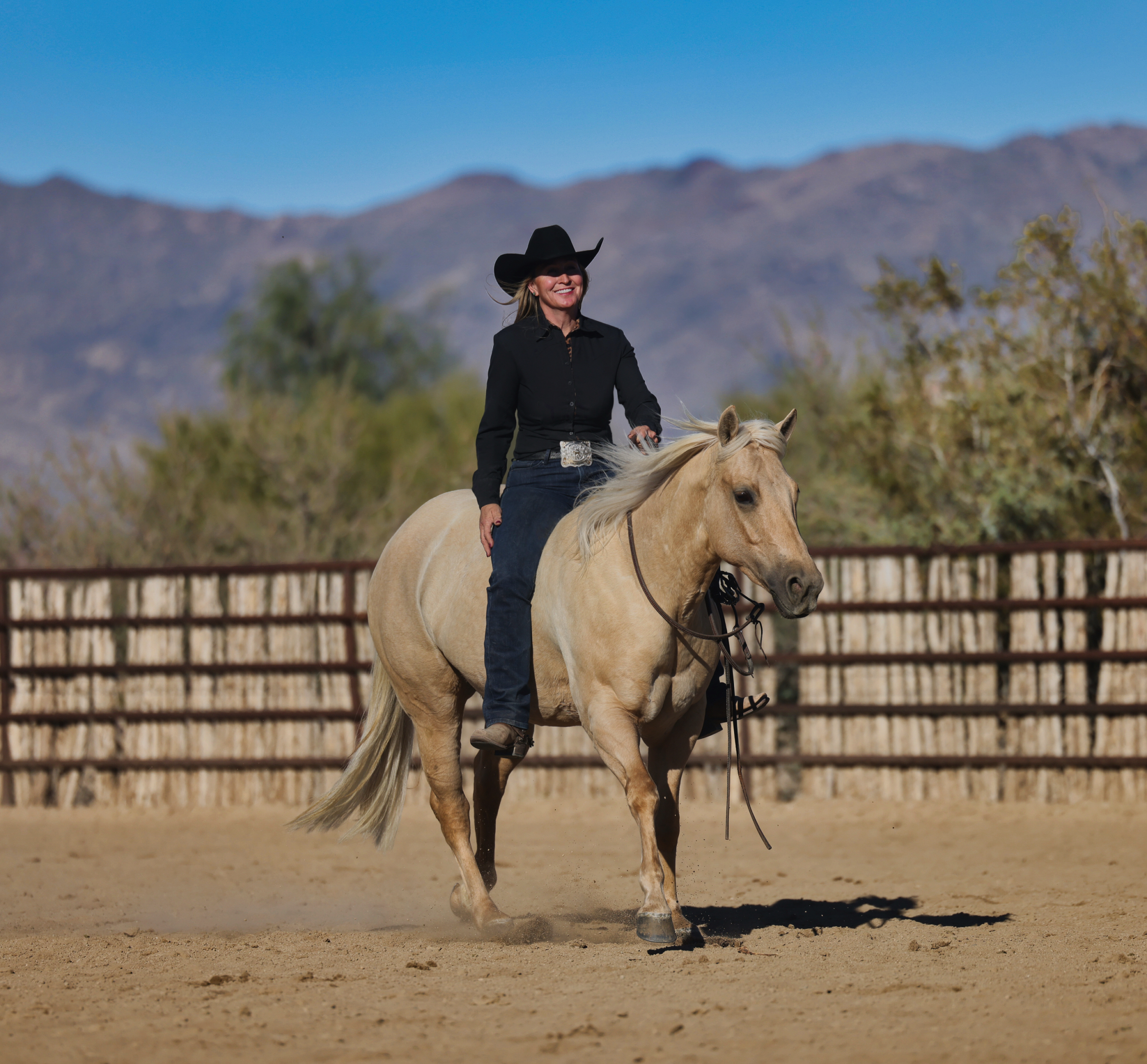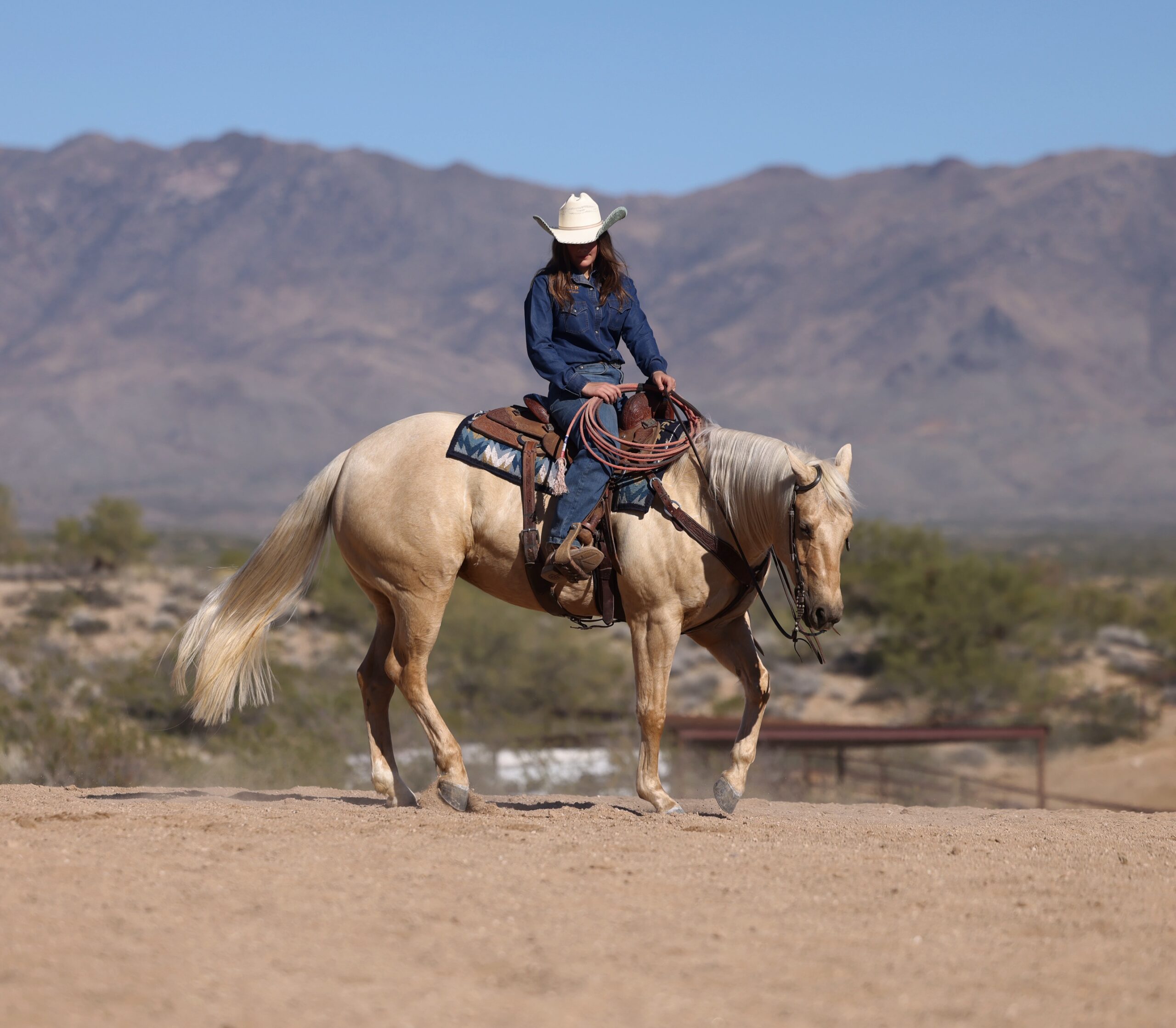 After graduating with a degree in architecture, Paje headed west! It was then that she met her match, her future husband Chad Turner. Already an exceptional horseman, Chad, in a short time, shared his knowledge and encouraged her to compete at higher levels. It was at that time that Turner Performance Horses became a household name among those seeking a well-versed horse for a variety of disciplines. Paje Turner has since won notable awards and is active in the AQHA, APHA, Northern Rodeo, The Run for a Million, World Series of Team Roping Finale, National Snaffle Bit, National Cutting Horse, National Reining Horse, Versatility Ranch Horse, and many more. From the back country of Montana to the sandy trails of Arizona, and ranches in between, Paje understands the importance of a horses experience outside the arena as well.
