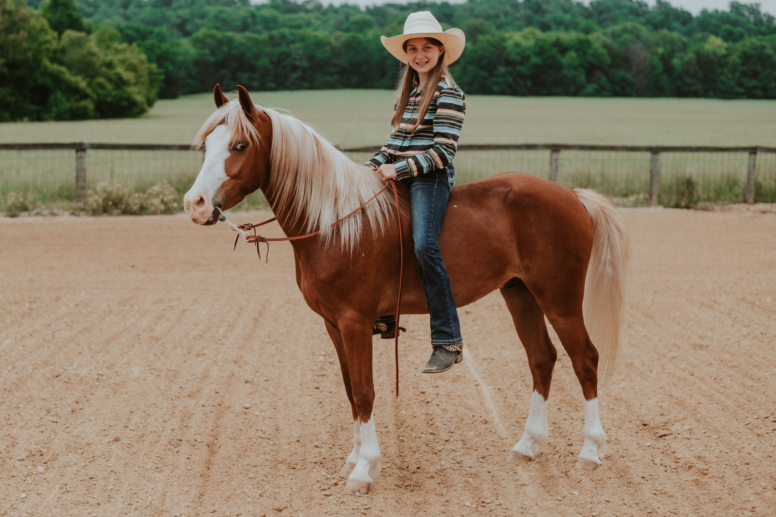 WarPony is a 5 year old gelding standing at 12.3. Beautiful sorrel with a flax mane and tail, bald face, blue eyes, and four white socks. His presence makes a statement everywhere he goes. WarPony is as gentle as they come. He is easy to catch and the first one to greet you in the pasture. He wants to be with you wherever you go. He has a smooth trot and easy to lope off. He will go as slow or as fast as you want. He is your all around pony, take him for a trail ride, push cows or take him to Jr Rodeo. He will keep up with the big horses all day and has no quit in him. You can rope the sled, track steers and rope on him. He knows the barrels and the poles, excellent on a trail course and you can tie goats off him. You don’t find them like WarPony every day he is an exceptional pony. He will stand tied for hours, loves to be groomed, bathes well, stands for the farrier and trailers well. WarPony is a true gem, willing to please his rider.